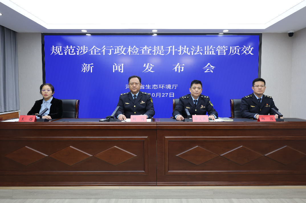 10月27日,成人视频 召开“规范涉企行政检查 提升执法监管质效”新闻发布会。厅生态环境执法局局长刘炜介绍全省生态环境系统规范涉企行政检查,提升执法监管质效的有关情况。厅生态环境执法局副局长郝园、厅生态环境执法局三级调研员徐义民分别就“我省生态环境系统在规范涉企行政检查方面做了哪些工作、2025年执法大练兵活动的创新与亮点、在行政执法检查中为服务企业发展具体做了哪些努力”等问题回答记者提问。发布会由厅科技与宣传教育处副处级干部王蓓主持。