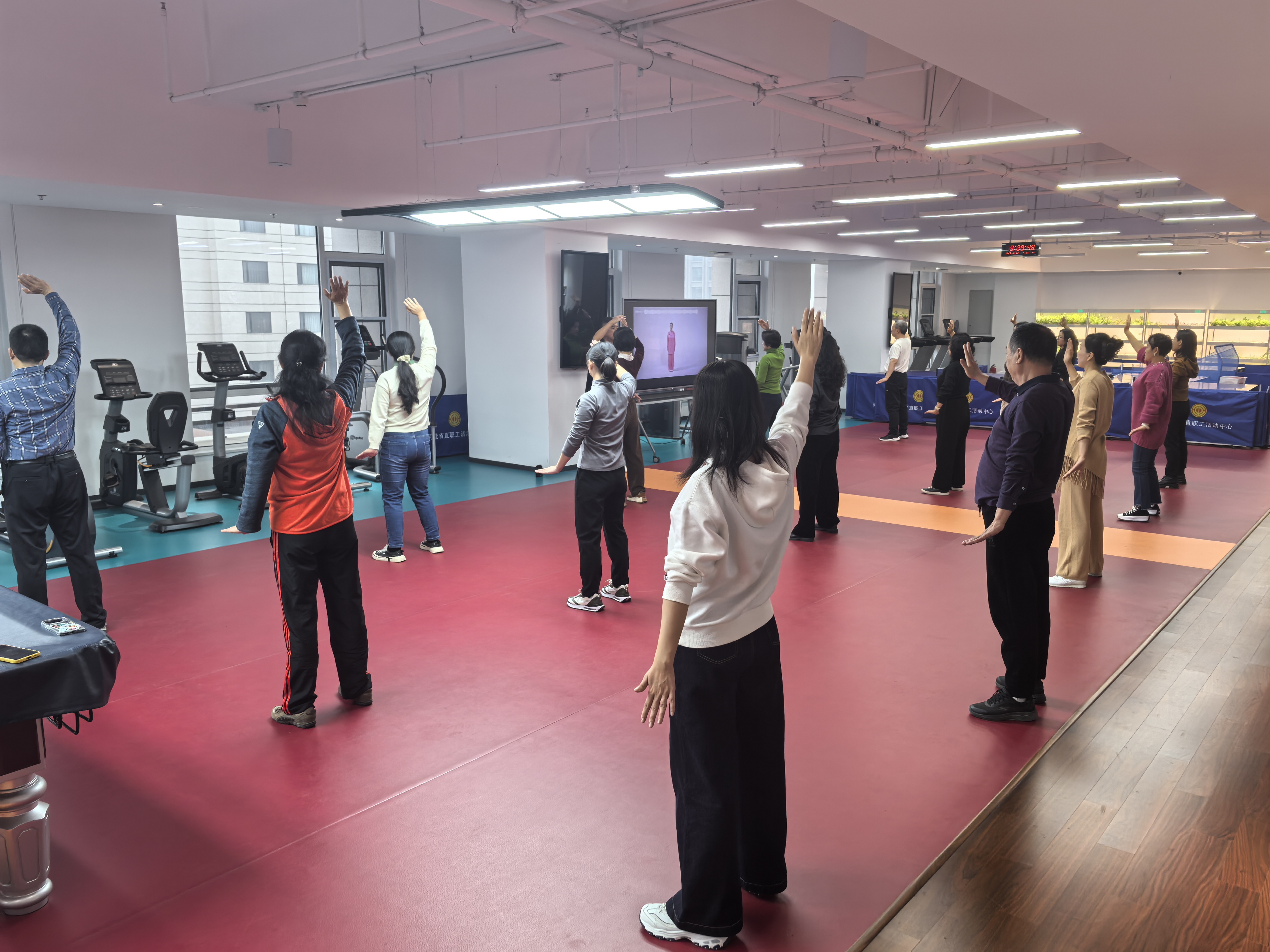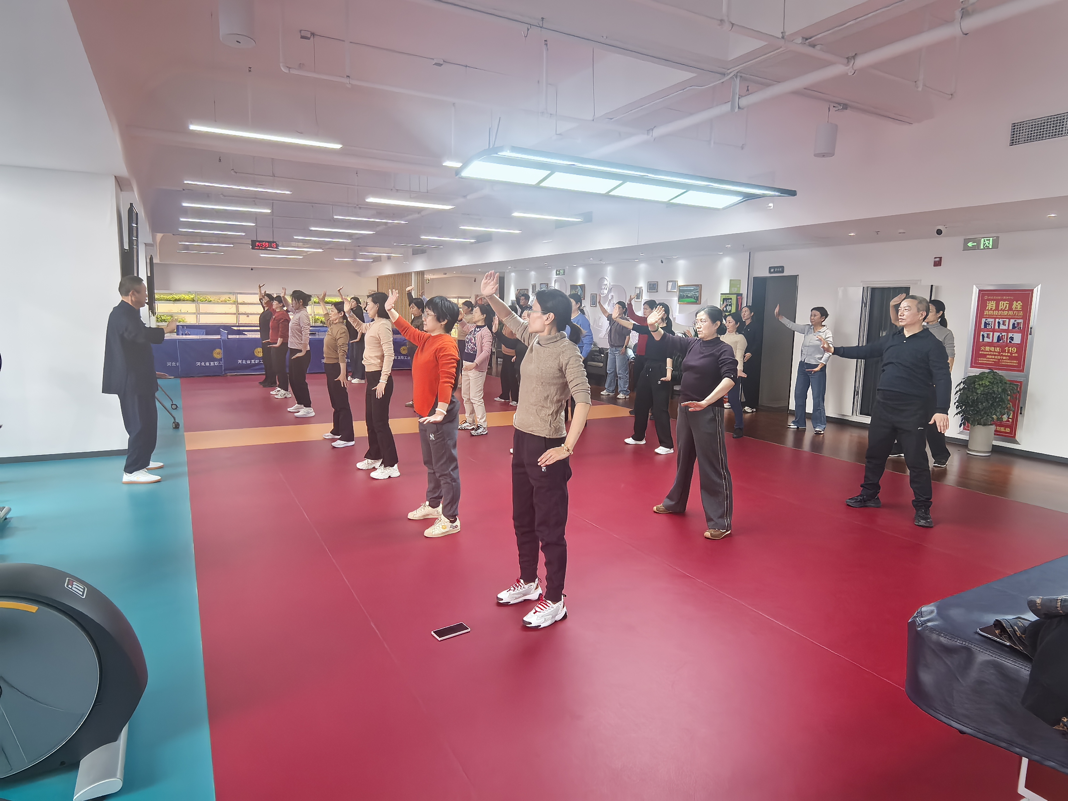 活动特别邀请了国家一级社会体育指导员,武氏太极拳第六代传人周永林老师担任专业指导教练。周老师有着丰富的八段锦教学经验以及专业的体育教学背景,曾多次参与各类健身推广活动。活动现场,周老师深入浅出地讲解八段锦每个动作的要领和功效,参训人员学习热情高涨。在老师悉心指导下,大家注重“气”与“形”的结合,用呼吸引导动作,达到了良好的锻炼效果。