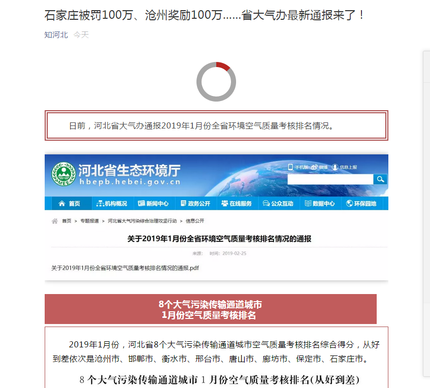 知河北(河北广播电视台融媒体成人视频新闻 微信):石家庄被罚100万、沧州奖励100万……省大气办最新通报来了! 来源:省生态环境宣传教育中心 时间:2019-02-25