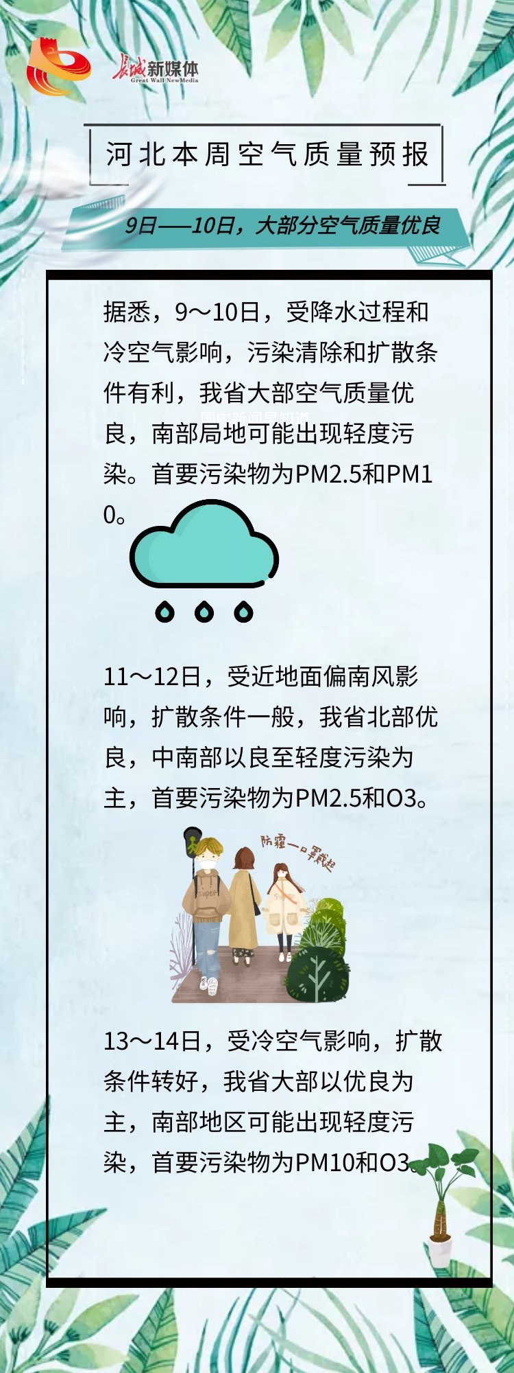长城网:河北本周空气质量预报:9日—10日,大部分空气质量优良 来源:省生态环境宣传教育中心 时间:2019-04-10