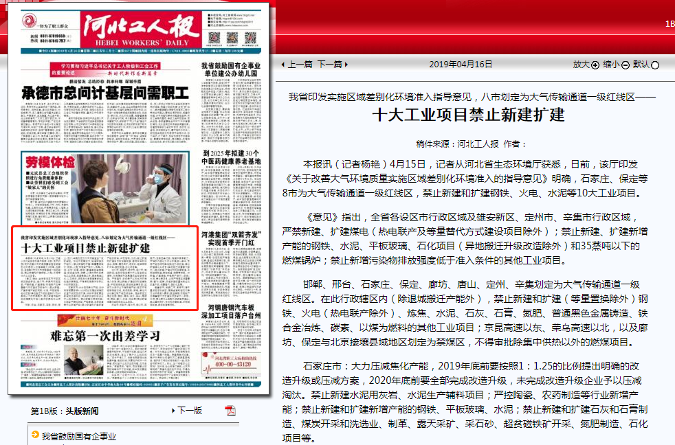 获悉,日前,该厅印发《关于改善大气环境质量实施区域差别化环境准入的指导意见》明确,石家庄、保定等8市为大气传输通道一级红线区,禁止新建和扩建钢铁、火电、水泥等10大工业项目。