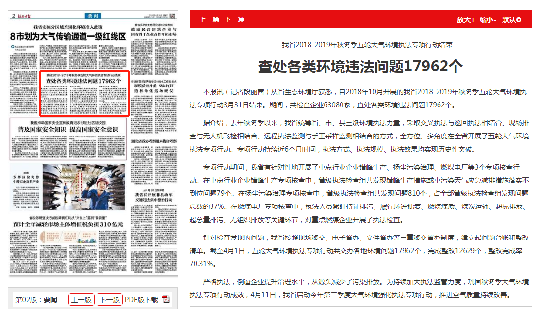 据介绍,去年秋冬季以来,我省统筹省、市、县三级环境执法力量,采取交叉执法与巡回执法相结合、现场排查与无人机飞检相结合、远程执法监测与手工采样监测相结合的方式,全方位、多角度在全省开展了五轮大气环境执法专项行动。专项行动持续近6个月时间,执法方式、执法规模、执法效果均实现历史性突破。