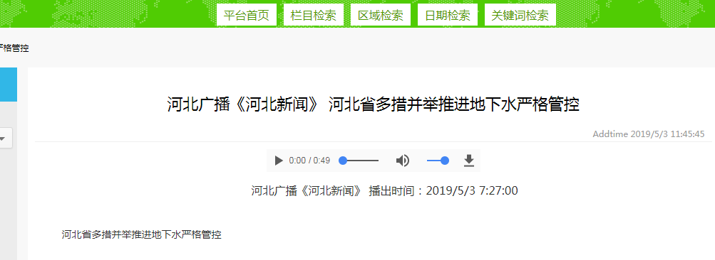 河北综合广播《河北新闻》:河北省多措并举推进地下水严格管控