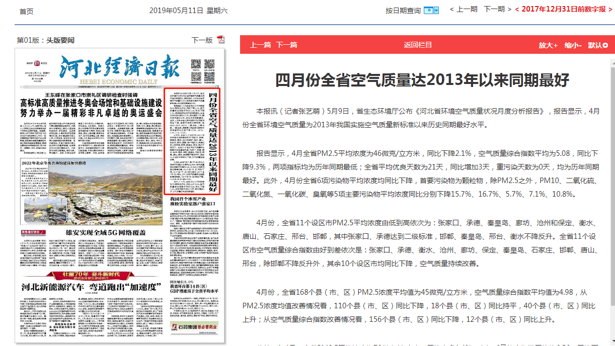 本报讯(记者张艺萌)5月9日,成人视频 公布《河北省环境空气质量状况月度分析报告》,报告显示,4月份全省环境空气质量为2013年我国实施空气质量新标准以来历史同期最好水平。