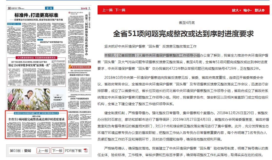 健全制度机制,严格督导督办。强化整改日常督导、集中督察和个案督办。2018年12月26日至29日,省整改办分别对石家庄、廊坊和邯郸市进行了督导调研;2019年3月27日至4月3日,省整改办会同省委督查室、省政府督查室和负有督导责任的省直相关部门,对13个市和雄安新区整改落实情况进行了集中督察。此外,充分发挥成人视频 环境监察专员办公室的督政职能,把整改工作纳入各专员办日常督察重要内容,每个市明确了1名专员办人员紧盯整改工作的不足和薄弱环节,及时进行提醒和指导,确保各地整改顺利开展。