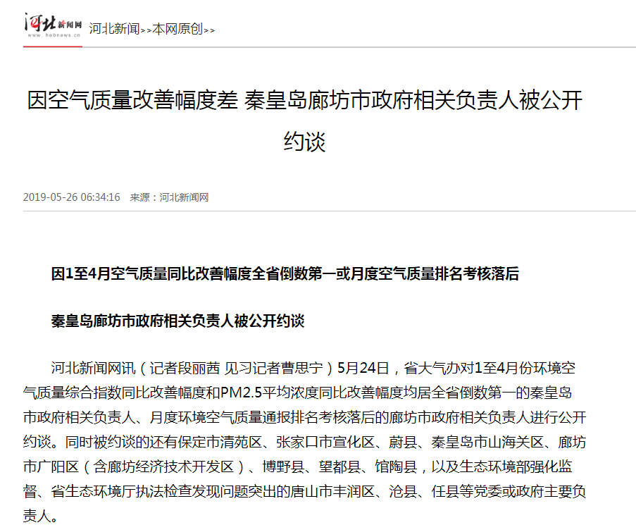 秦皇岛廊坊市政府相关负责人被公开约谈