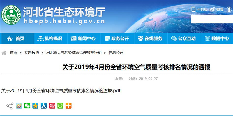 河北新闻网:河北通报4月份环境空气质量考核排名 邯郸被预警提示