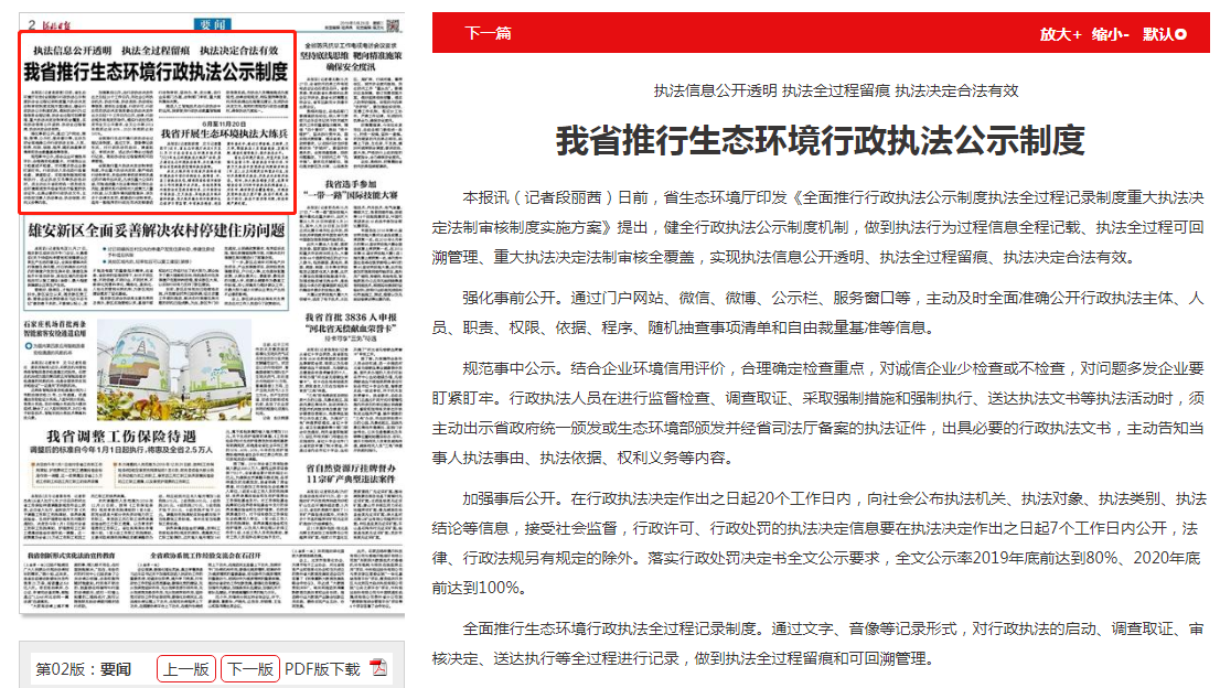 全面推行生态环境行政执法全过程记录制度。通过文字、音像等记录形式,对行政执法的启动、调查取证、审核决定、送达执行等全过程进行记录,做到执法全过程留痕和可回溯管理。