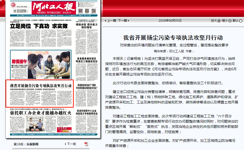 印发《河北省扬尘污染专项执法攻坚月行动方案》,决定6月份在全省开展扬尘污染专项执法攻坚月行动。 此次行动分市县全面排查整治、总结培训、省级督查执法三个阶段进行。 建立全口径扬尘污染分类管控清单,明确排查范围、排查内容和排查问题,重点对建设工程施工工地、建(构)筑物拆除工地、绿化施工和养护、道路养护和保洁、矿产资源开采和加工、工业及其他物料的运输和贮存、装饰装修等活动以及裸露土地开展排查整治。 对建设工程施工工地全面排查。此次专项行动将建设工程施工工地“六个百分百”要求作为检查重点,在复查前期专项行动交办问题整改情况的同时,对问题突出的重点区域开展“解剖式”“服务式”执法,发现当地企业存在的共性问题和相关职能部门的管理漏洞、监管空白,因地制宜,对症施策; 对矿产资源开采和加工企业全面排查。对矿产资源开采、加工区域扬尘防治情况开展集中排查; 对工业及其他物料扬尘污染防治情况进行全面排查。重点检查砂石、粉煤灰等物料是否密闭贮存等; 对道路扬尘全面排查。重点检查相关单位和部门是否对严重破损的路面加强道路养护等;对裸露地面及园林绿化作业检查。重点检查市政河道以及沿线、公共用地的裸露地面和其他城镇裸露地面是否采取绿化、透水铺装、地面硬化或者覆盖等扬尘污染防治措施等。 在执法检查中,各地将严格按照省人大常委会《关于加强扬尘污染防治的决定》和《施工场地扬尘排放标准》《扬尘在线监测系统建设及运行技术规范》要求,在对扬尘污染企业在线监测系统建设及运行落实情况开展执法检查的基础上,依法严厉打击超标排放的建设单位。 对排查出的环境问题实行清单化管理、全过程管控,督促落实整改要求。同时,此次行动实行科学差异管控,有效提高监管执法的针对性、科学性、实效性,对监管对象进行科学分级,严禁“一刀切”。设立信访举报电话和专项行动曝光台,自觉接受舆论监督和社会监督。实行日统计、日报送制度,各组将发现的突出问题线索,移交至市、县政府以及相关环境监察专员办,将对环境问题突出的责任单位、责任人严肃问责。