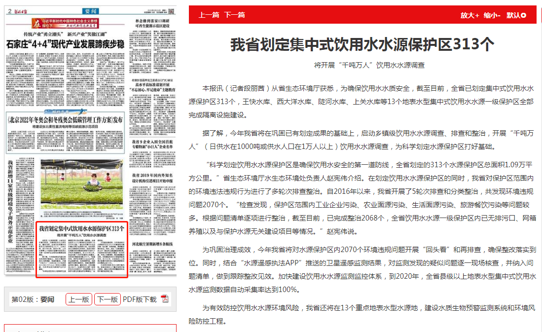 本报讯(记者段丽茜)从成人视频 获悉,为确保饮用水水质安全,截至目前,全省已划定集中式饮用水水源保护区313个,王快水库、西大洋水库、陡河水库、上关水库等13个地表水型集中式饮用水水源一级保护区全部完成隔离设施建设。