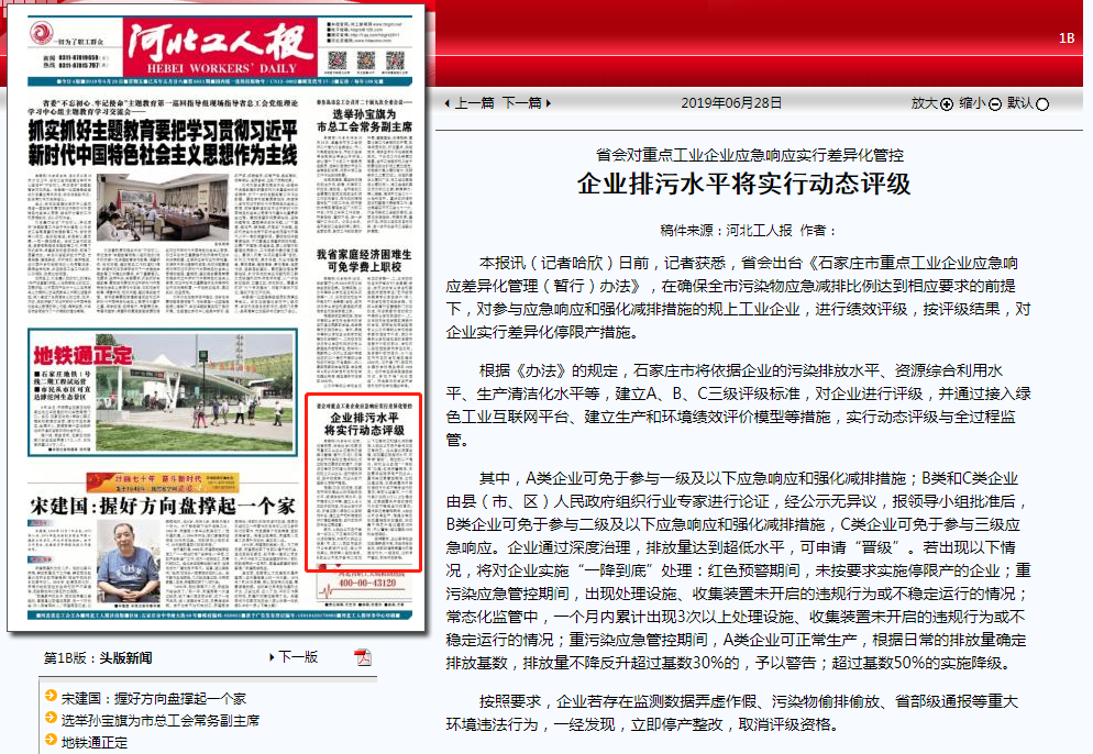 本报讯(记者哈欣)日前,记者获悉,省会出台《石家庄市重点工业企业应急响应差异化管理(暂行)办法》,在确保全市污染物应急减排比例达到相应要求的前提下,对参与应急响应和强化减排措施的规上工业企业,进行绩效评级,按评级结果,对企业实行差异化停限产措施。 根据《办法》的规定,石家庄市将依据企业的污染排放水平、资源综合利用水平、生产清洁化水平等,建立A、B、C三级评级标准,对企业进行评级,并通过接入绿色工业互联网平台、建立生产和环境绩效评价模型等措施,实行动态评级与全过程监管。 其中,A类企业可免于参与一级及以下应急响应和强化减排措施;B类和C类企业由县(市、区)人民政府组织行业专家进行论证,经公示无异议,报领导小组批准后,B类企业可免于参与二级及以下应急响应和强化减排措施,C类企业可免于参与三级应急响应。企业通过深度治理,排放量达到超低水平,可申请“晋级”。若出现以下情况,将对企业实施“一降到底”处理:红色预警期间,未按要求实施停限产的企业;重污染应急管控期间,出现处理设施、收集装置未开启的违规行为或不稳定运行的情况;常态化监管中,一个月内累计出现3次以上处理设施、收集装置未开启的违规行为或不稳定运行的情况;重污染应急管控期间,A类企业可正常生产,根据日常的排放量确定排放基数,排放量不降反升超过基数30%的,予以警告;超过基数50%的实施降级。 按照要求,企业若存在监测数据弄虚作假、污染物偷排偷放、省部级通报等重大环境违法行为,一经发现,立即停产整改,取消评级资格。