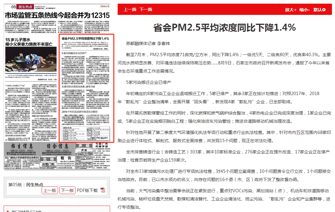 截至7月末,PM2.5平均浓度71微克/立方米,同比下降1.4%;一级优5天、二级良80天,优良率40.3%。主要河流水质明显改善、对环境违法继续保持高压态势……8月9日,石家庄市政府召开新闻发布会,通报了今年以来省会生态环境重点工作进展情况。