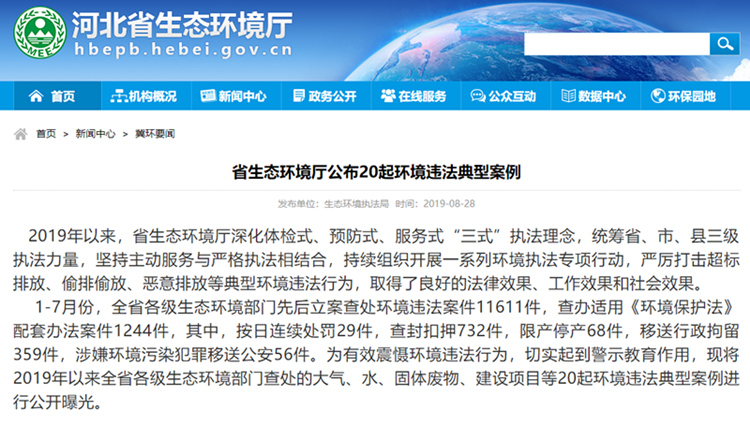 河北新闻网讯(记者贾楠)1至7月份,河北省各级生态环境部门先后立案查处环境违法案件11611件,查办适用《环境保护法》配套办法案件1244件,其中,按日连续处罚29件,查封扣押732件,限产停产68件,移送行政拘留359件,涉嫌环境污染犯罪移送公安56件。同时,为有效震慑环境违法行为,切实起到警示教育作用,成人视频 还将今年以来全省各级生态环境部门查处的20起环境违法典型案例进行公开曝光。