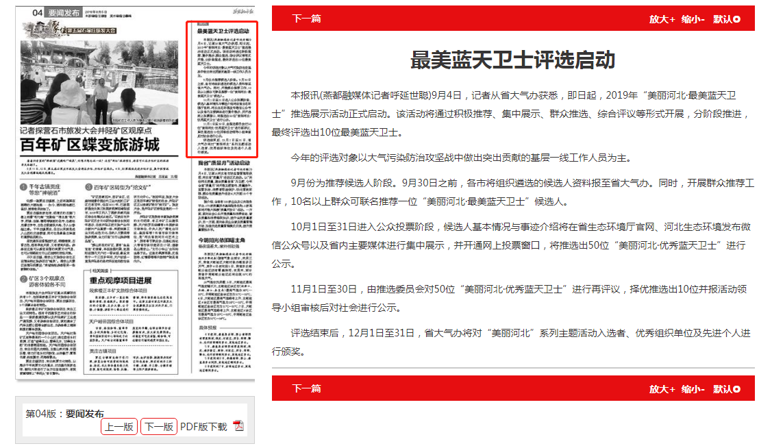 本报讯(燕都融媒体记者呼延世聪)9月4日,记者从省大气办获悉,即日起,2019年“美丽河北·最美蓝天卫士”推选展示活动正式启动。该活动将通过积极推荐、集中展示、群众推选、综合评议等形式开展,分阶段推进,最终评选出10位最美蓝天卫士。