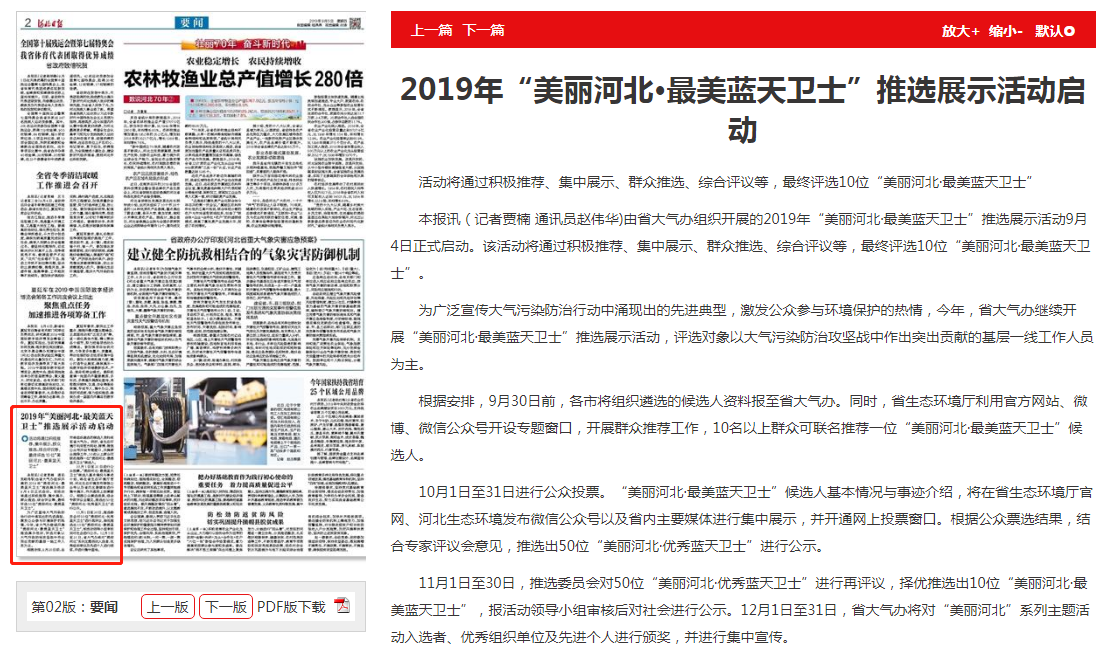 活动将通过积极推荐、集中展示、群众推选、综合评议等,最终评选10位“美丽河北·最美蓝天卫士”