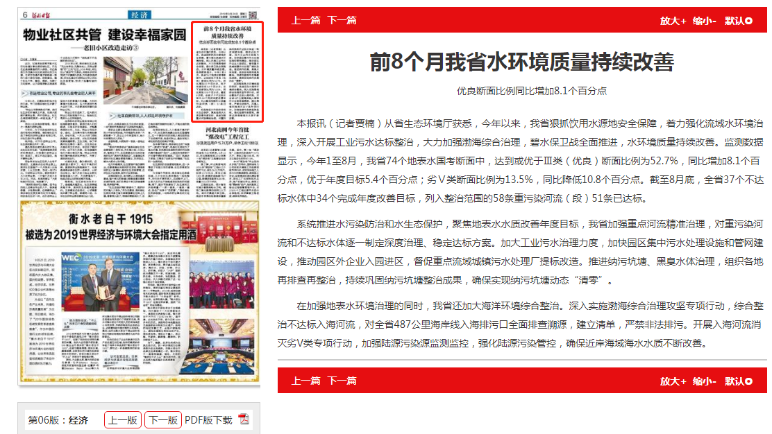 在加强地表水环境治理的同时,我省还加大海洋环境综合整治。深入实施渤海综合治理攻坚专项行动,综合整治不达标入海河流,对全省487公里海岸线入海排污口全面排查溯源,建立清单,严禁非法排污。开展入海河流消灭劣V类专项行动,加强陆源污染源监测监控,强化陆源污染管控,确保近岸海域海水水质不断改善。