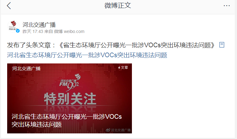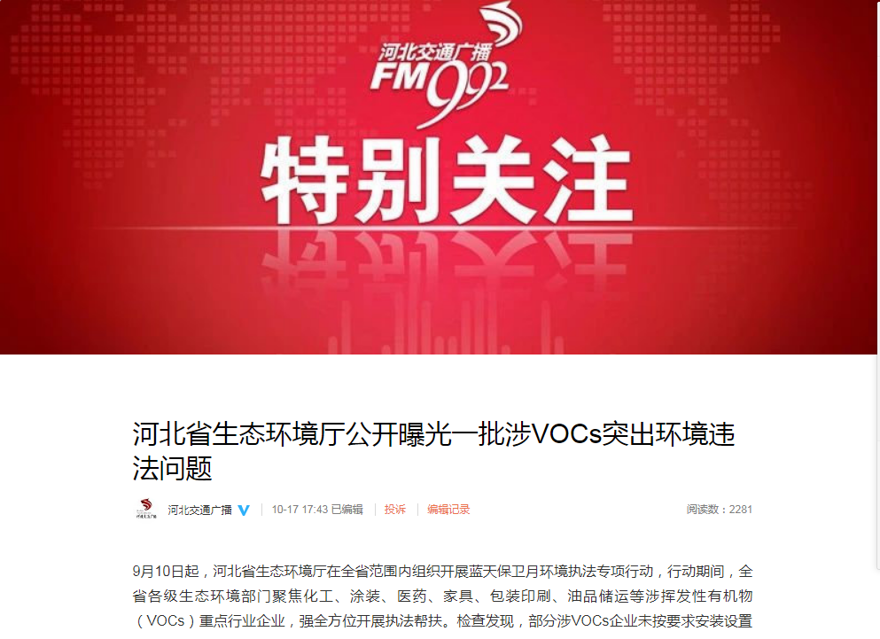 河北交通广播:成人视频 公开曝光一批涉VOCs突出环境违法问题