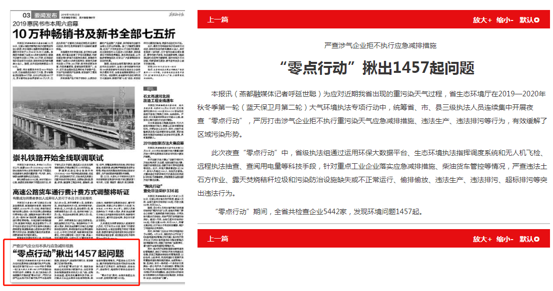 “零点行动”期间,全省共检查企业5442家,发现环境问题1457起。