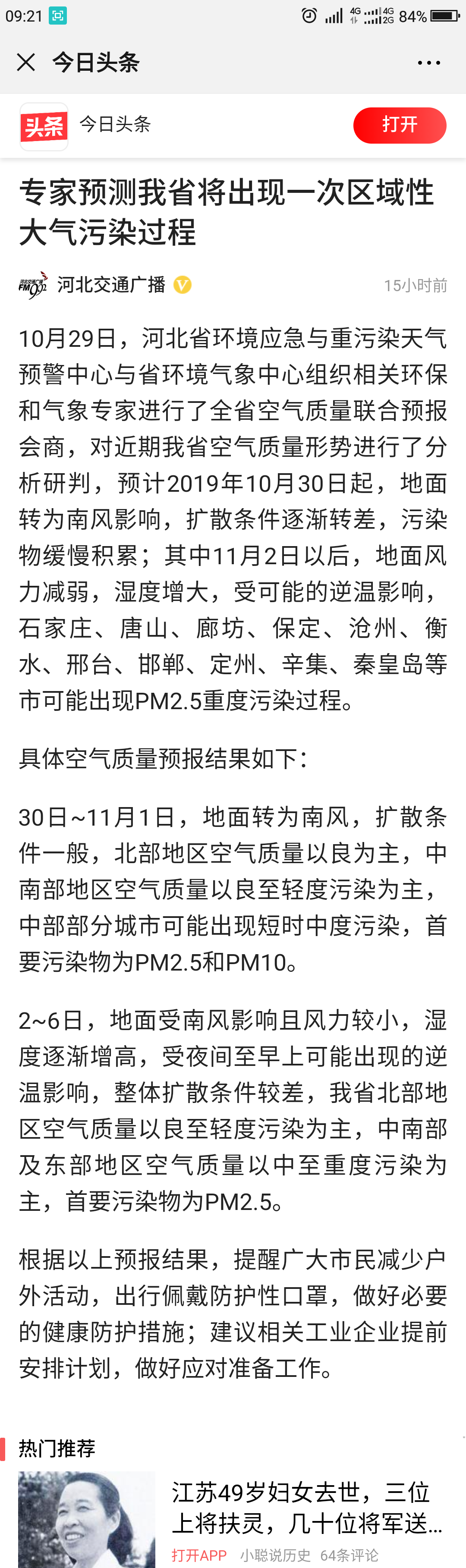 河北广播电视台冀时客户端:专家预测河北将出现一次区域性大气污染过程