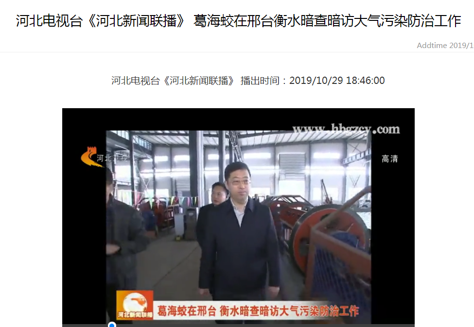 河北电视台《河北新闻联播》:葛海蛟在邢台衡水暗查暗访大气污染防治工作