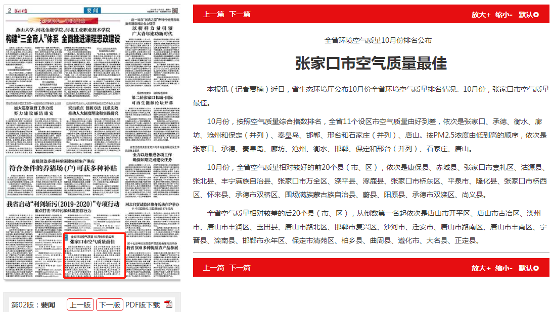 本报讯(记者贾楠)近日,成人视频 公布10月份全省环境空气质量排名情况。10月份,张家口市空气质量最佳。