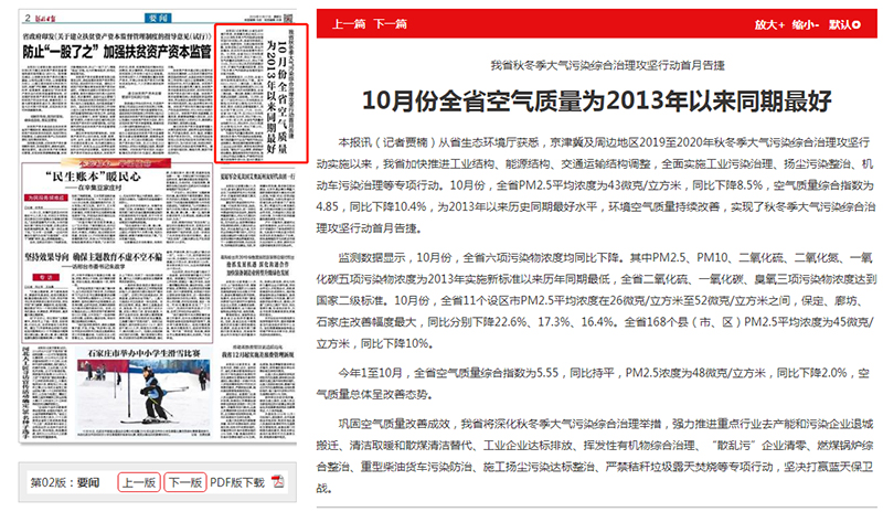 河北日报:10月份全省空气质量为2013年以来同期最好