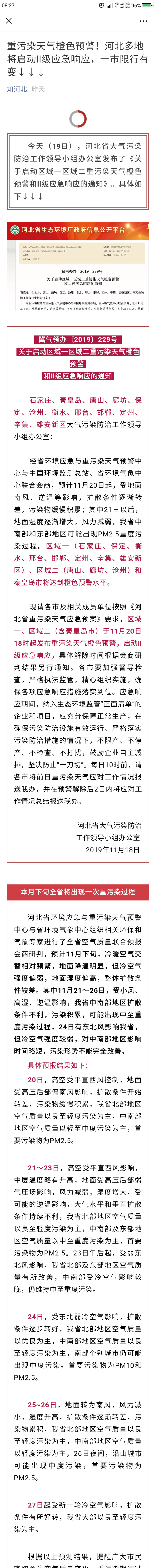 知河北:重污染天气橙色预警!河北多地将启动Ⅱ级应急响应,一市限行有变↓↓↓
