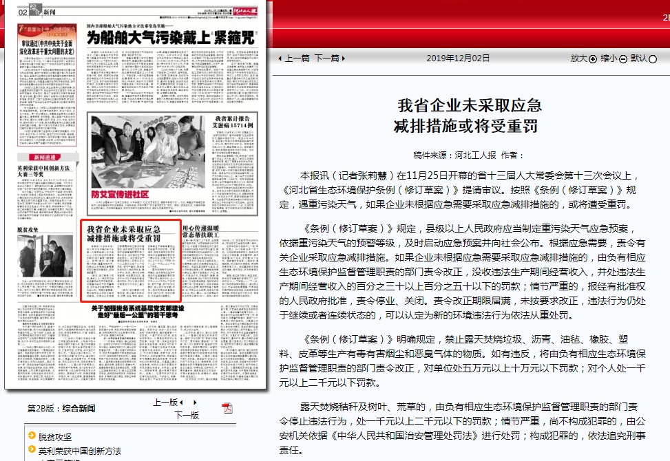 保护条例(修订草案)》提请审议。按照《条例(修订草案)》规定,遇重污染天气,如果企业未根据应急需要采取应急减排措施的,或将遭受重罚。