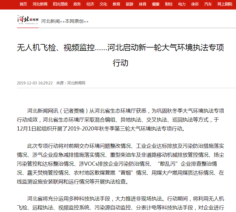 河北新闻网:无人机飞检、视频监控……河北启动新一轮大气环境执法专项行动