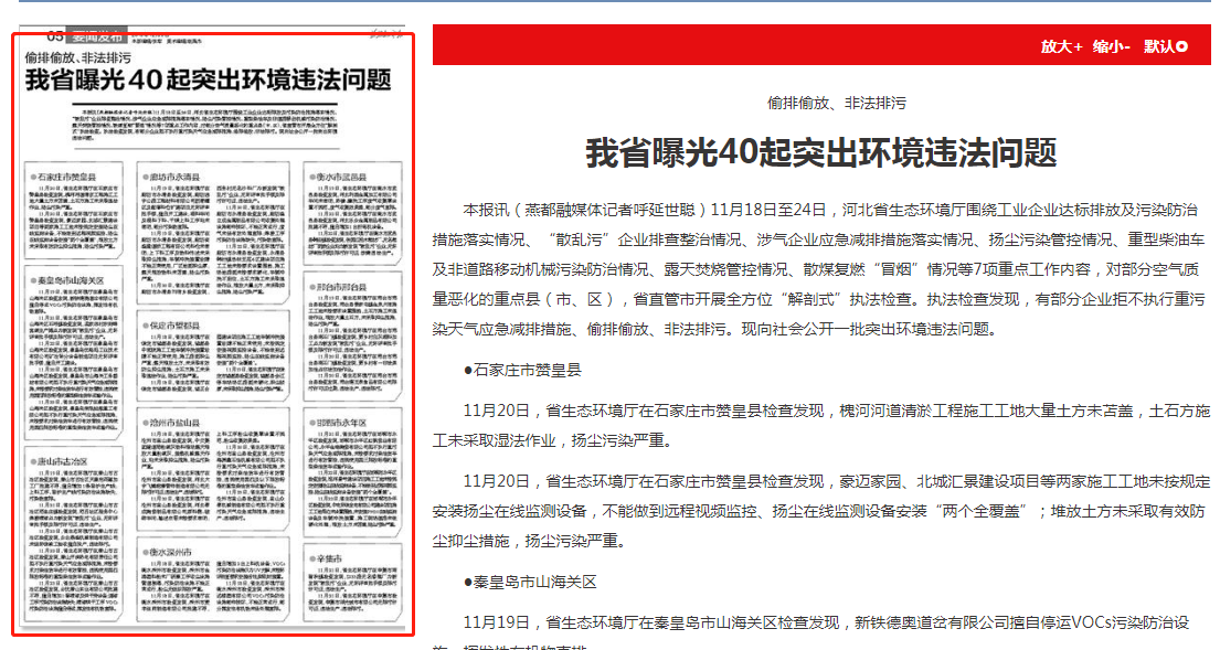 本报讯(燕都融媒体记者呼延世聪)11月18日至24日,成人视频 围绕工业企业达标排放及污染防治措施落实情况、“散乱污”企业排查整治情况、涉气企业应急减排措施落实情况、扬尘污染管控情况、重型柴油车及非道路移动机械污染防治情况、露天焚烧管控情况、散煤复燃“冒烟”情况等7项重点工作内容,对部分空气质量恶化的重点县(市、区),省直管市开展全方位“解剖式”执法检查。执法检查发现,有部分企业拒不执行重污染天气应急减排措施、偷排偷放、非法排污。现向社会公开一批突出环境违法问题。