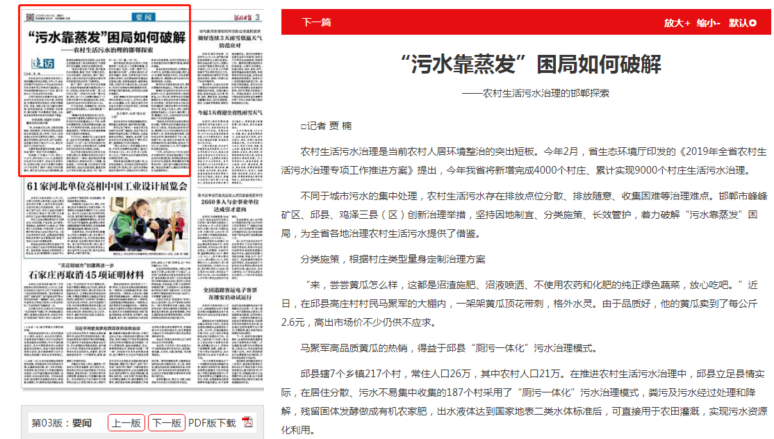 “峰峰矿区既是典型的老工矿区,又是邯郸市重要的水源保护地。矿区每年农村污水排放量高达407万吨,如果污水肆意排放,任其自然蒸发或渗入地表,不仅影响村容村貌,还会对生态环境造成破坏。”邯郸市生态环境局峰峰矿区分局局长张清强说。
