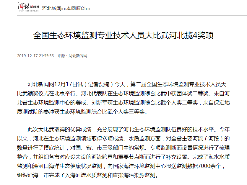 河北新闻网:全国生态环境监测专业技术人员大比武河北揽4奖项