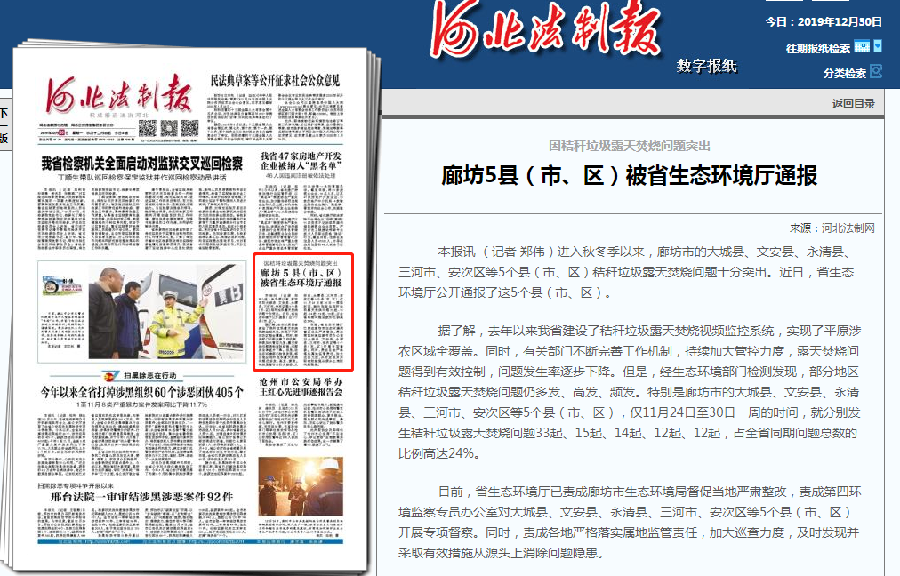 河北法制报:因秸秆垃圾露天焚烧问题突出 廊坊5县(市、区)被成人视频 通报