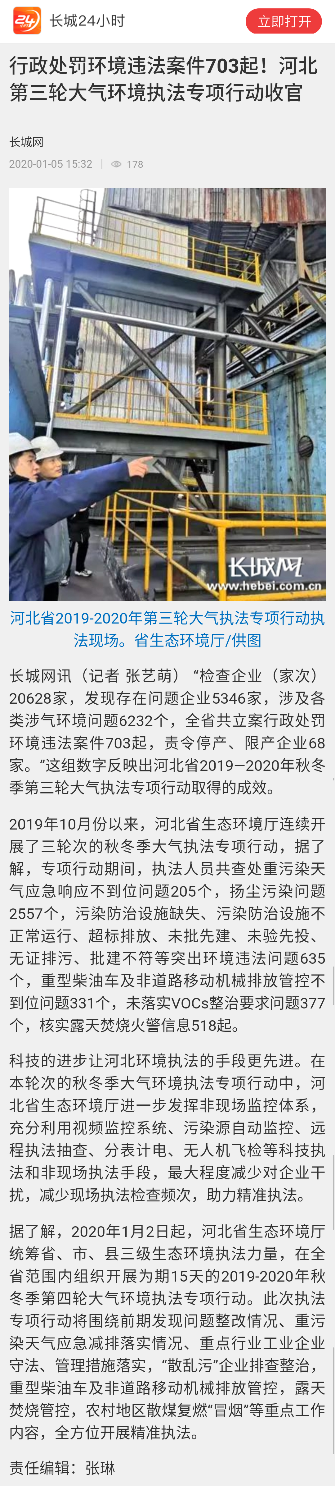 长城网:行政处罚环境违法案件703起!河北第三轮大气环境执法专项行动收官