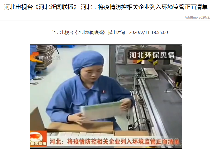 河北电视台《河北新闻联播》:河北 将疫情防控相关企业列入环境监管正面清单