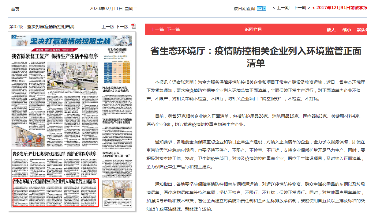 本报讯(记者张艺萌)为全力服务保障疫情防控相关企业和项目正常生产建设及物资运输,近日,成人视频 下发紧急通知,要求将疫情防控相关企业列入环境监管正面清单,全面保障正常生产运行,对正面清单内企业不停产、不限产;对相关车辆不检查、不限行;对相关企业项目“隔空服务”,不检查、不打扰。