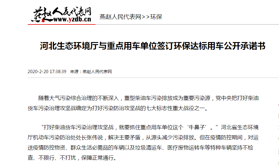依照生态环境部办公厅印送的《关于加强重污染天气应对夯实应急减排措施的指导意见》,河北省确定日使用重型柴油车10辆次及以上的单位为重点用车单位。