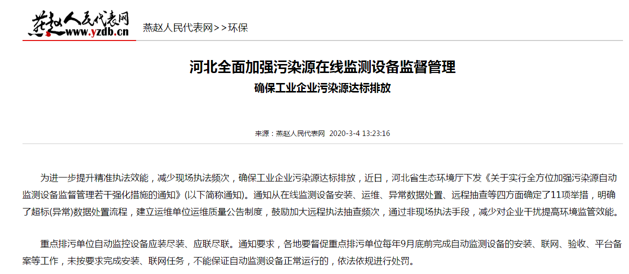 建立自动监测设备超标(异常)闭环处置流程。河北省要求各地建立完善的超标(异常)数据“发现-核实-审核-移交-核查-反馈”平台化处置机制。重点排污单位应如实填报数据超标(异常)发生的原因,并提供佐证材料;各级生态环境部门负责审核判定,并根据结果移交同级执法部门处置。重点排污单位对超标(异常)处置单不填报、乱填报甚至弄虚作假的,实行首次提醒、三次警示、五次公开约谈,有效提升企业主体责任意识。县级生态环境执法机构要及时开展现场核查,对自动监测设备故障率高、运维不到位等情形,按照未保证监测设备正常运行相关条款依法依规处罚到位;对篡改、伪造自动监控数据的,严厉打击,移交公安部门;对确认存在超标排放等违法行为的,要严查重处,快查快办。此外,市级生态环境部门执法机构、信息监控部门定期联合开展抽查复核,确保工业企业污染源达标排放。