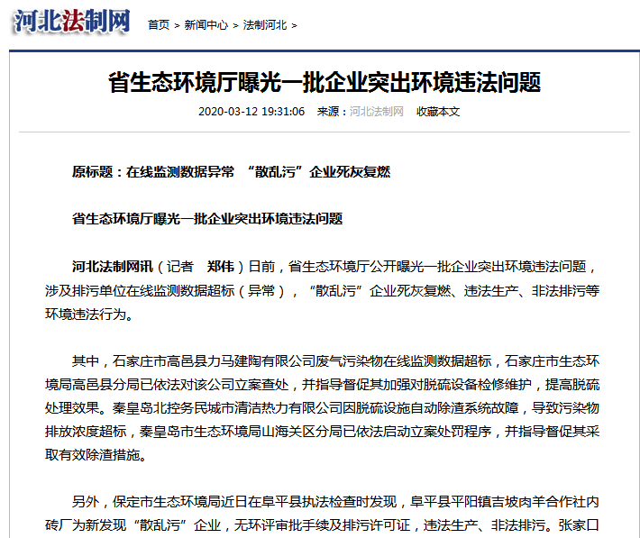 河北法制网:成人视频 曝光一批企业突出环境违法问题