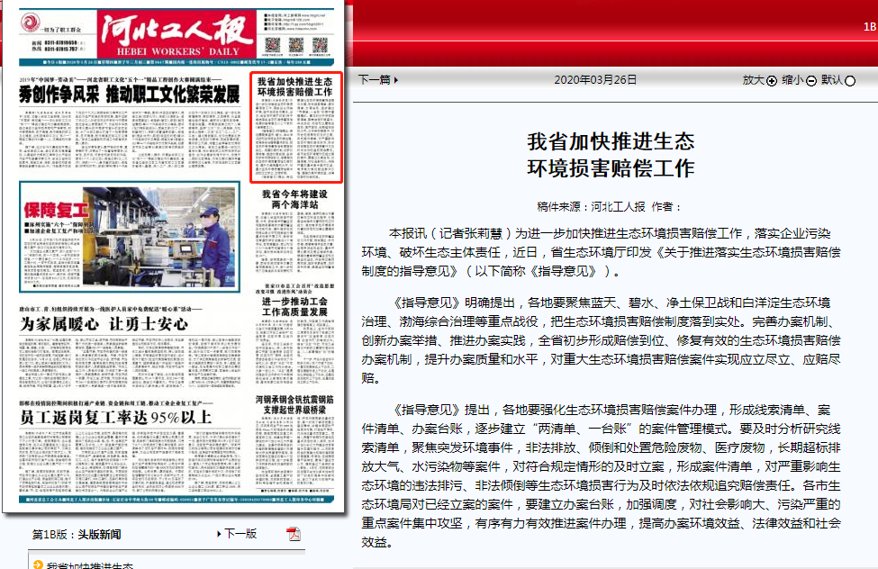《指导意见》明确提出,各地要聚焦蓝天、碧水、净土保卫战和白洋淀生态环境治理、渤海综合治理等重点战役,把生态环境损害赔偿制度落到实处。完善办案机制、创新办案举措、推进办案实践,全省初步形成赔偿到位、修复有效的生态环境损害赔偿办案机制,提升办案质量和水平,对重大生态环境损害赔偿案件实现应立尽立、应赔尽赔。