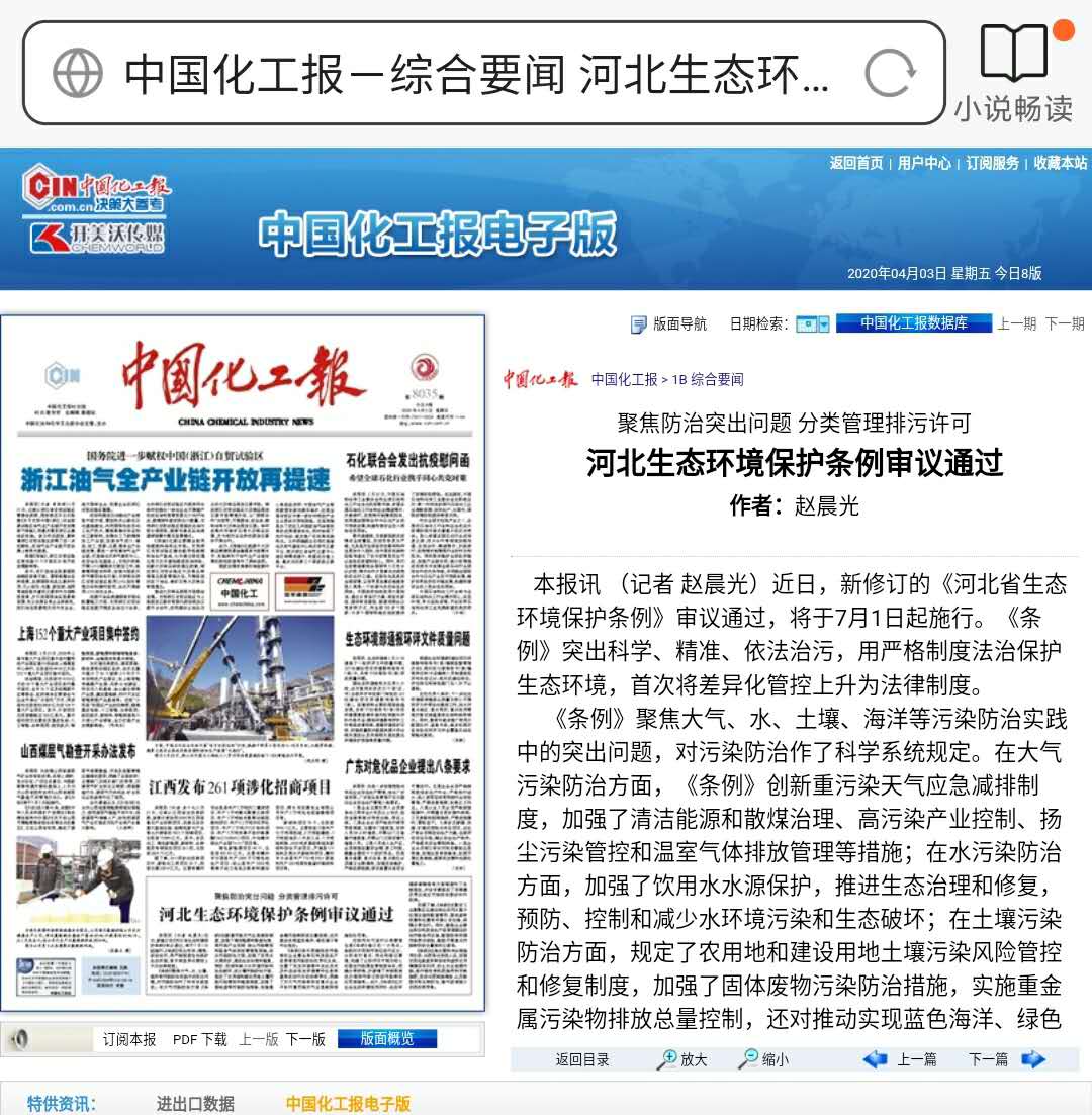 中国化工报:河北生态环境保护条例审议通过