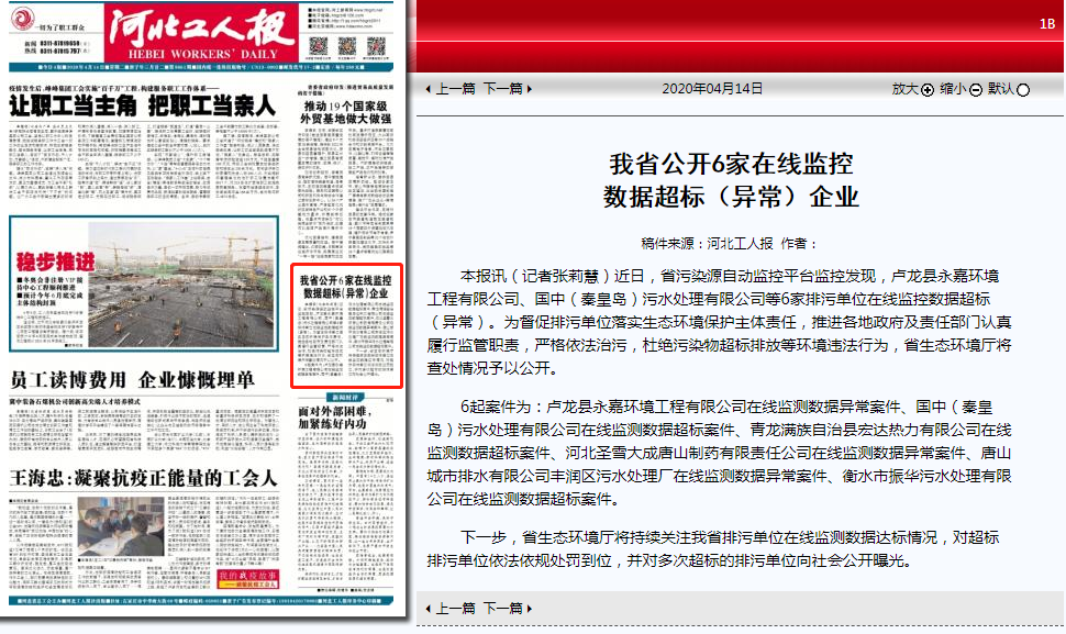 6起案件为:卢龙县永嘉环境工程有限公司在线监测数据异常案件、国中(秦皇岛)污水处理有限公司在线监测数据超标案件、青龙满族自治县宏达热力有限公司在线监测数据超标案件、河北圣雪大成唐山制药有限责任公司在线监测数据异常案件、唐山城市排水有限公司丰润区污水处理厂在线监测数据异常案件、衡水市振华污水处理有限公司在线监测数据超标案件。