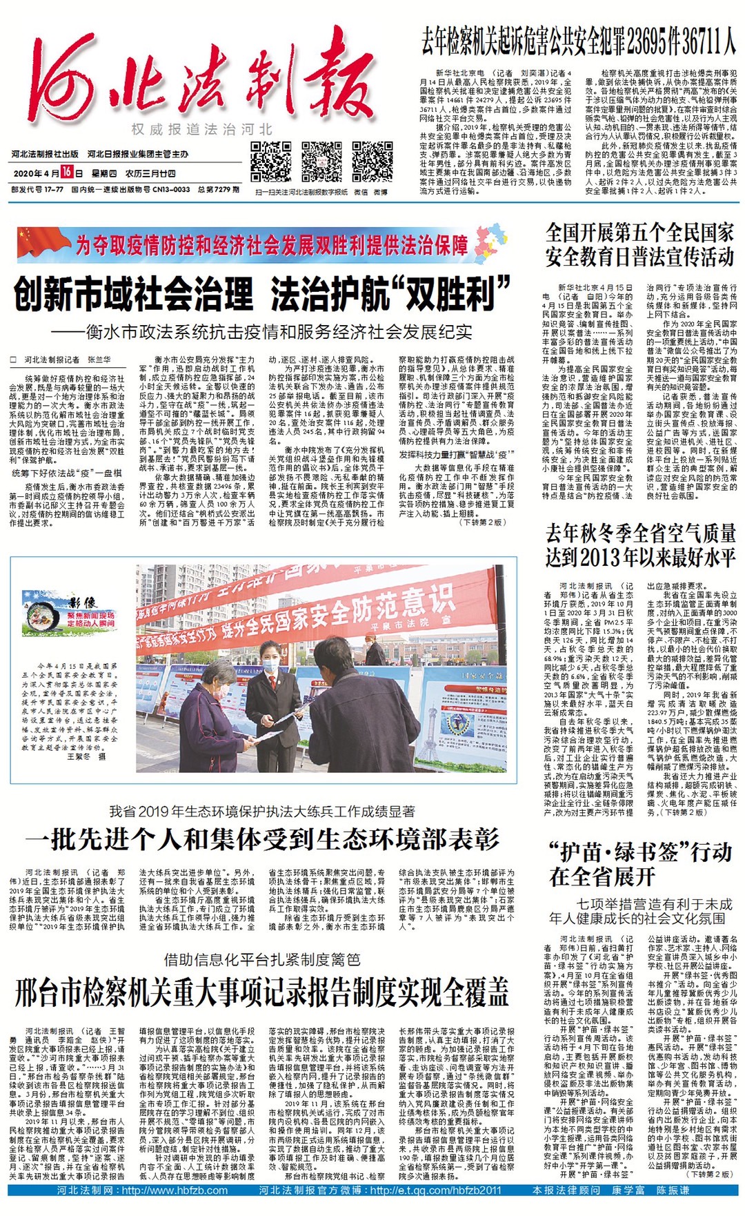 河北法制报:去年秋冬季全省空气质量达到2013年以来最好水平