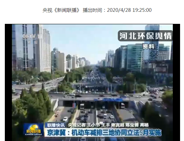央视《新闻联播》:京津冀 机动车减排三地协同立法5月实施