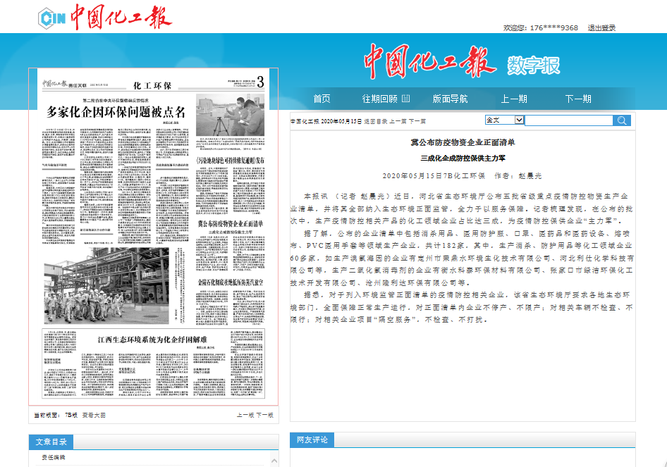 中国化工报:冀公布防疫物资企业正面清单 三成化企成防控保供主力军