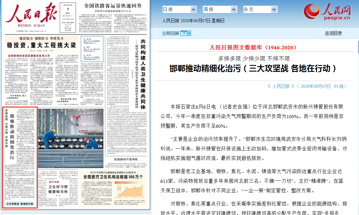 人民网石家庄6月6日电 (记者史自强)位于河北邯郸武安市的新兴铸管股份有限公司,今年一季度在非重污染天气预警期间的生产负荷为100%。而一年前同样是非预警期,其生产负荷不足60%。