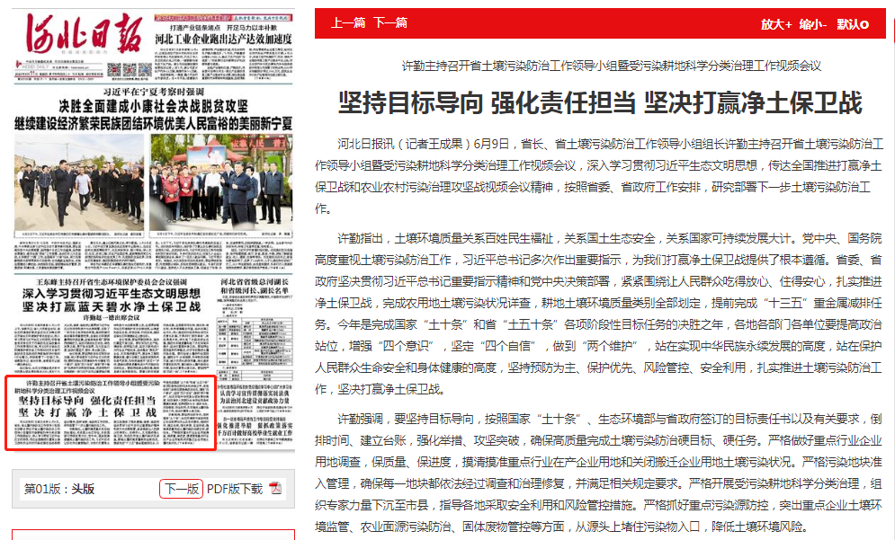 河北日报:坚持目标导向 强化责任担当 坚决打赢净土保卫战