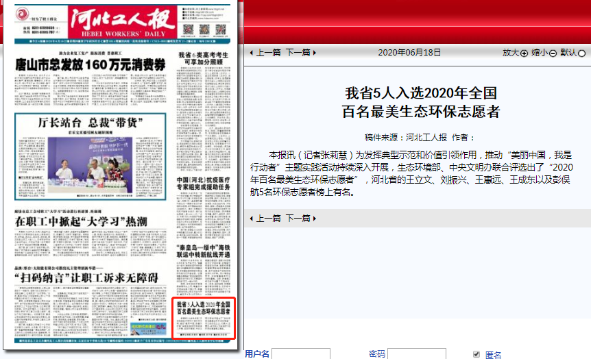 河北工人报:我省5人入选2020年全国百名最美生态环保志愿者