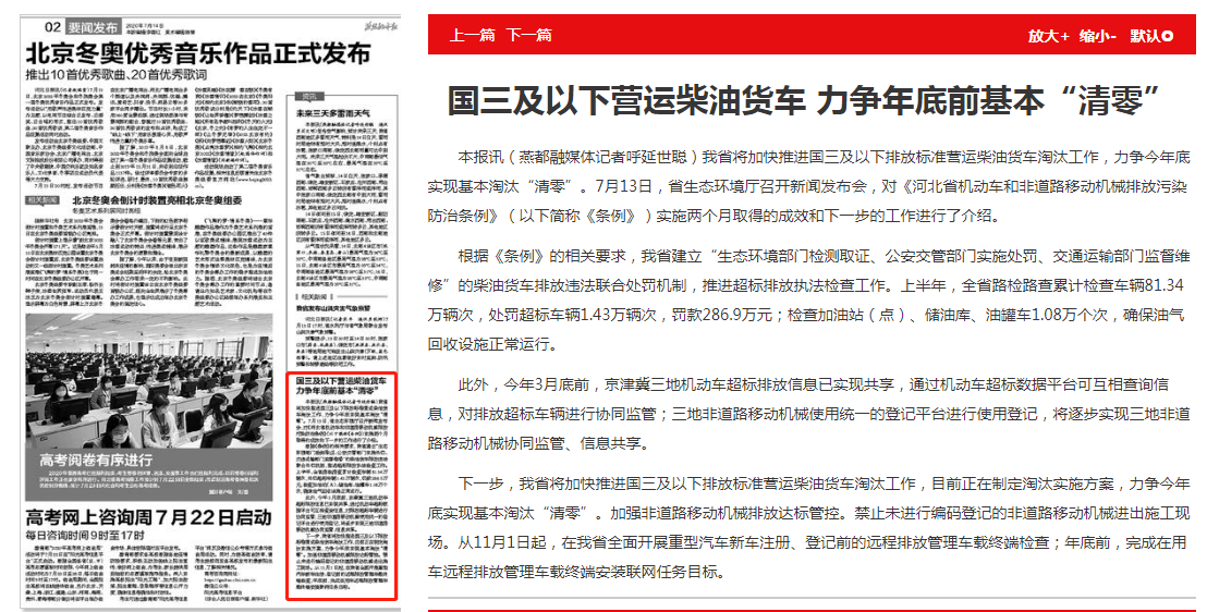 本报讯(燕都融媒体记者呼延世聪)我省将加快推进国三及以下排放标准营运柴油货车淘汰工作,力争今年底实现基本淘汰“清零”。7月13日,成人视频 召开新闻发布会,对《河北省机动车和非道路移动机械排放污染防治条例》(以下简称《条例》)实施两个月取得的成效和下一步的工作进行了介绍。