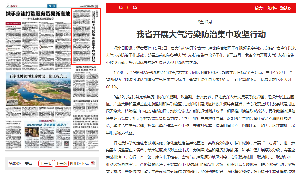 河北日报讯(记者贾楠)9月3日,省大气办召开全省大气污染综合治理工作视频调度会议,总结全省今年以来大气污染防治工作成效,部署当前和秋冬季大气污染防治集中攻坚工作。9至12月,我省全力开展大气污染防治集中攻坚行动,努力以优异成绩打赢蓝天保卫战收官之战。